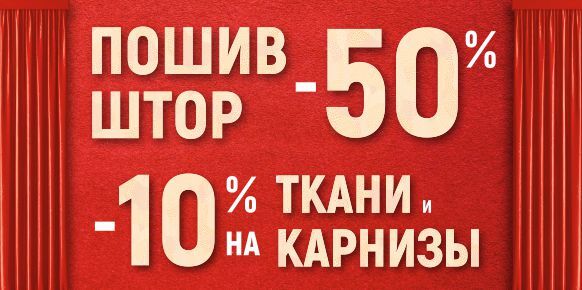 С 01 октября по 31 декабря дарим всем скидки 10% на ткани и карнизы! Но самое важное, чтобы ваши окна были всегда в тренде, уютными и красивыми дарим скидку 50% на пошив! *